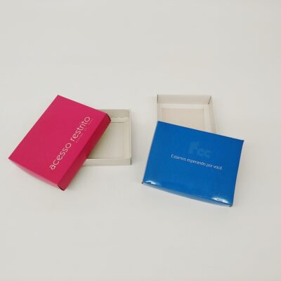 Caixas e cartuchos em papel branco ou Kraft. Com impressão em uma cor ou coloridas.