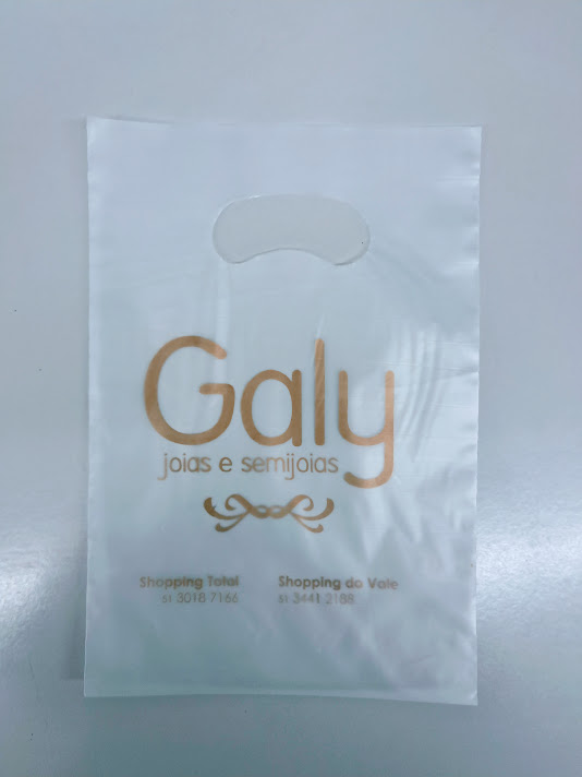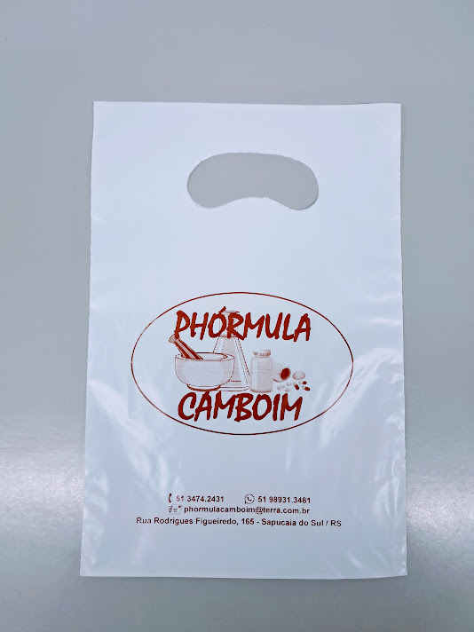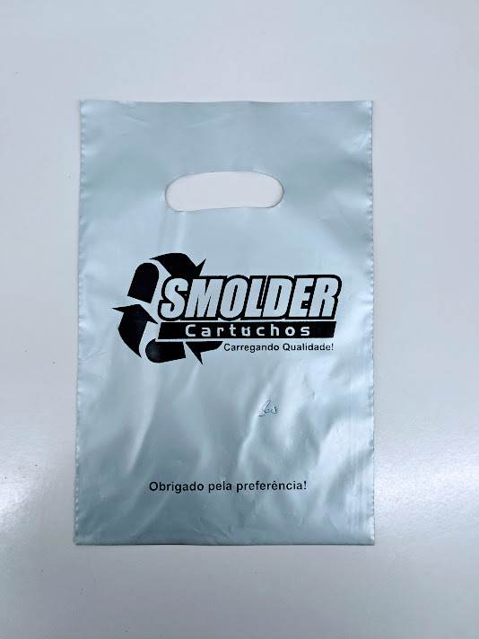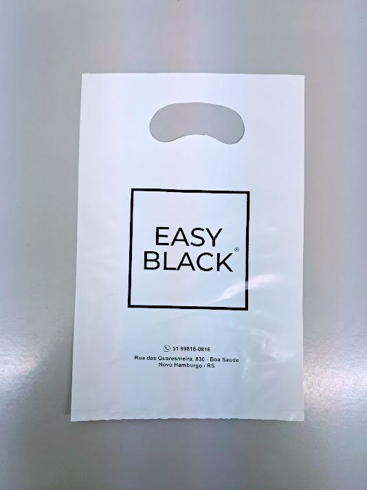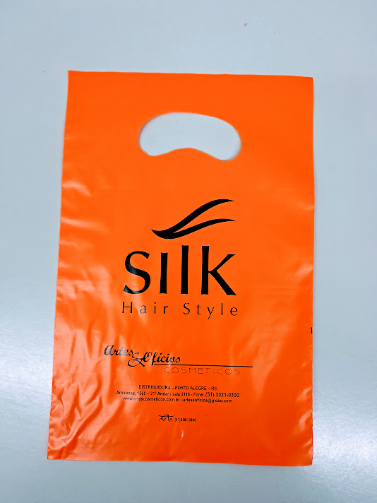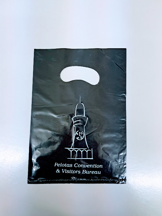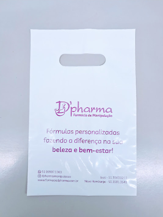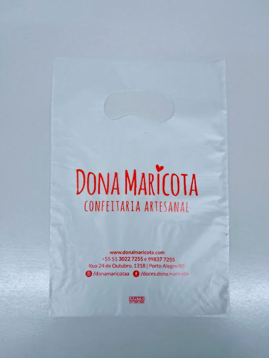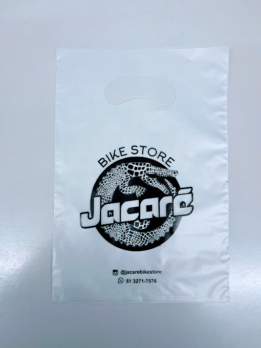 Sacolas personalizadas em plástico, com impressão em serigrafia ou flexografia. Alça Boca triste