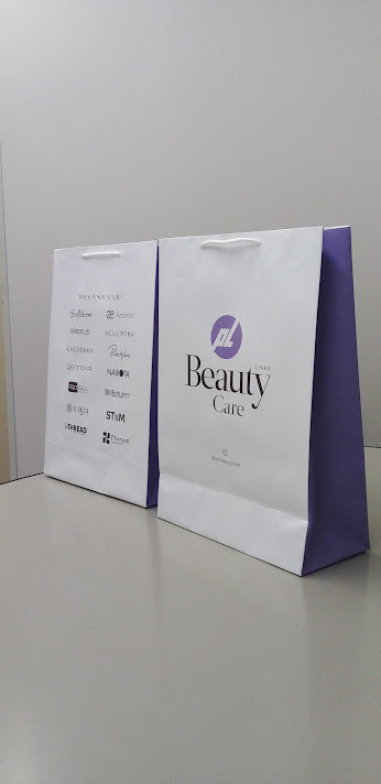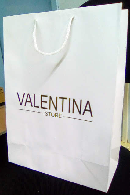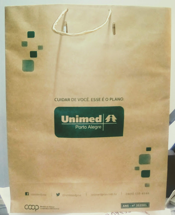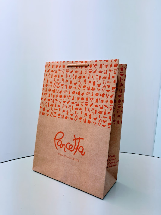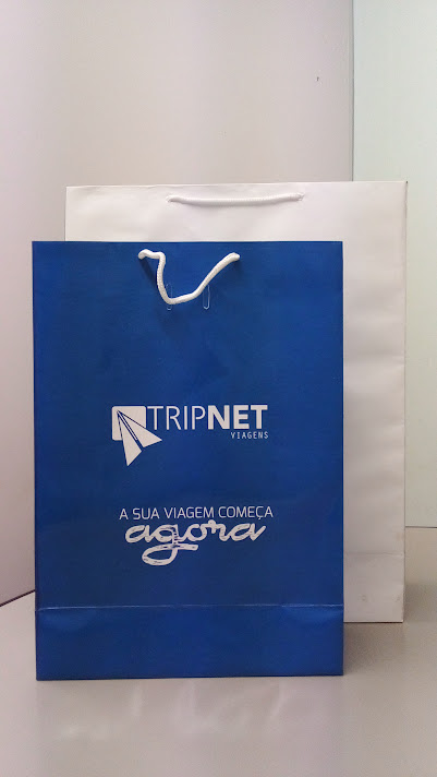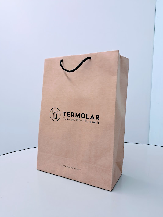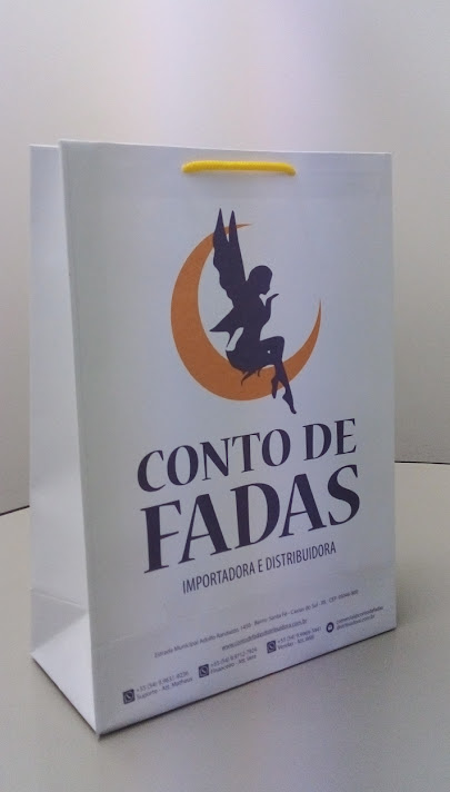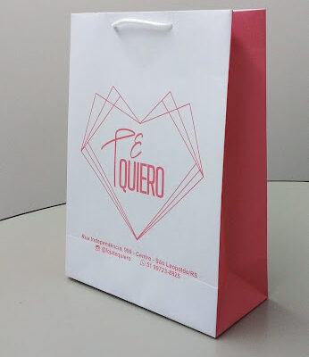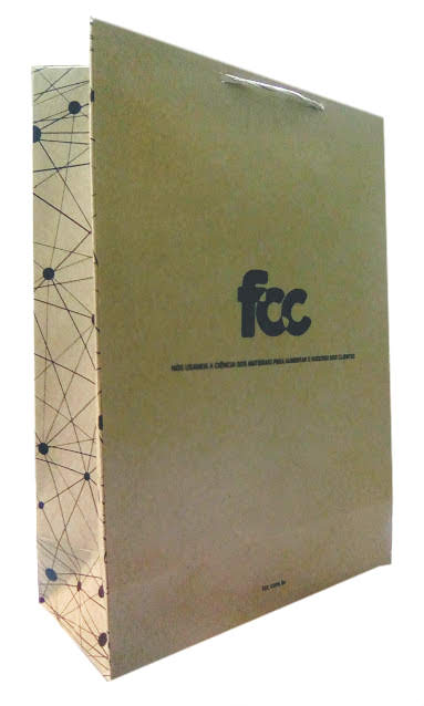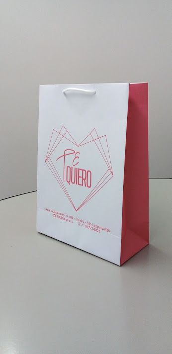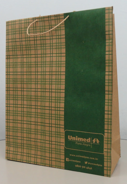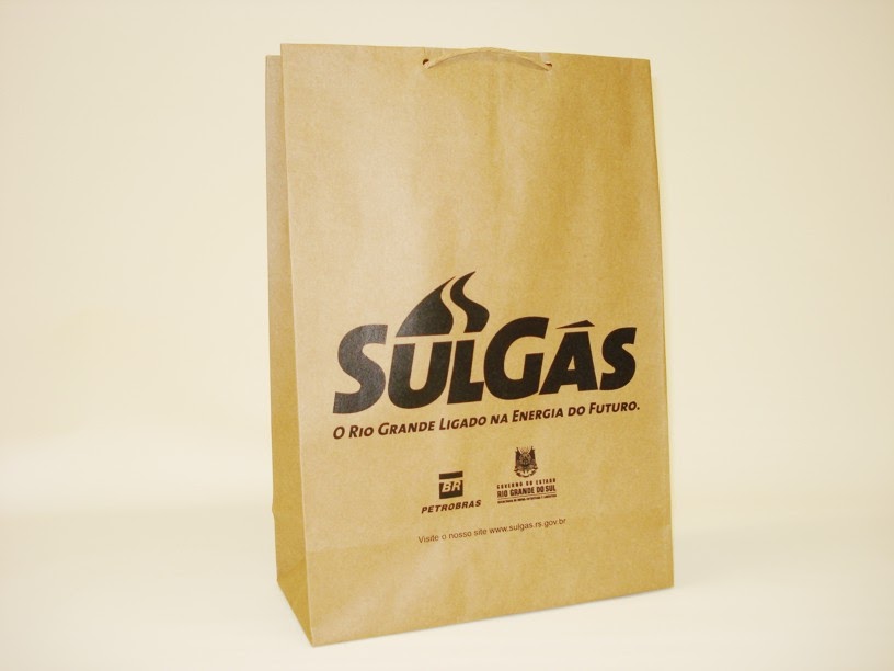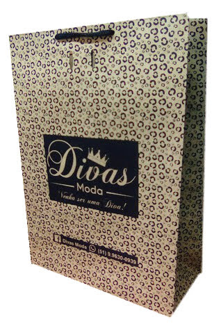 Sacolas personalizadas em papel offset, kraft, duplex, triplex. Impressão em serigrafia ou offset. Acabamento com reforço inferior e superior (dispensando o uso do ilhós). Cordão de nylon ou papel torcido em kraft natural.