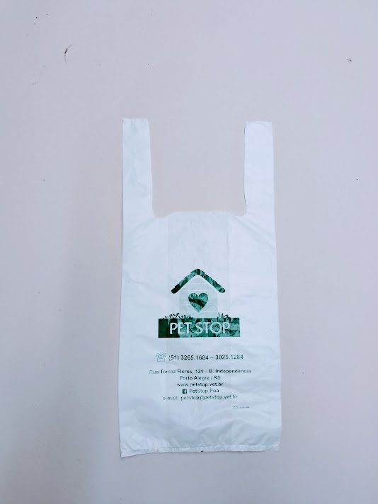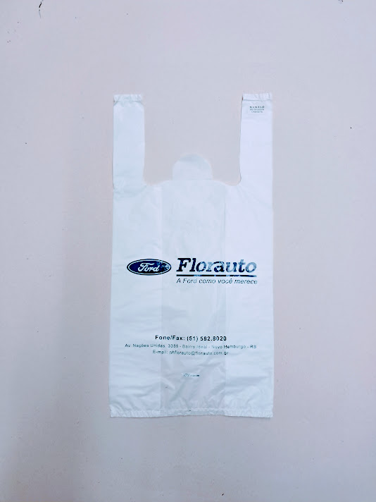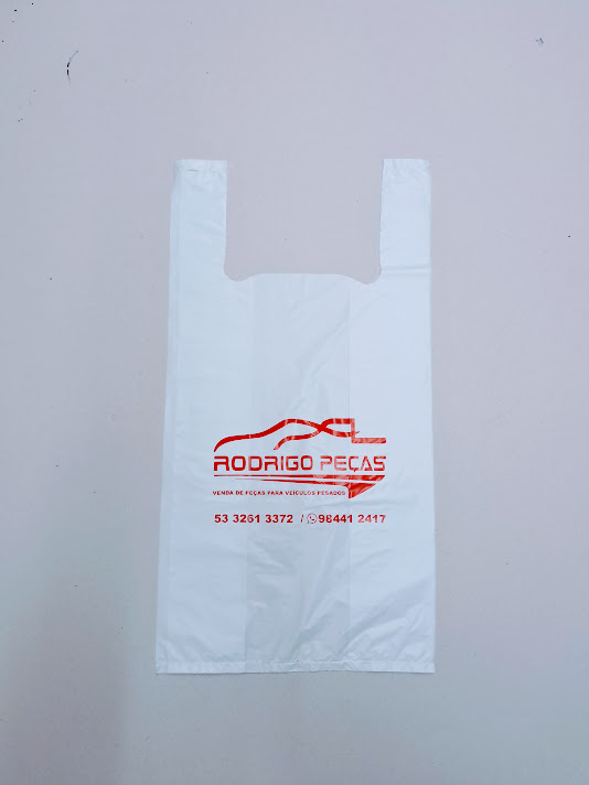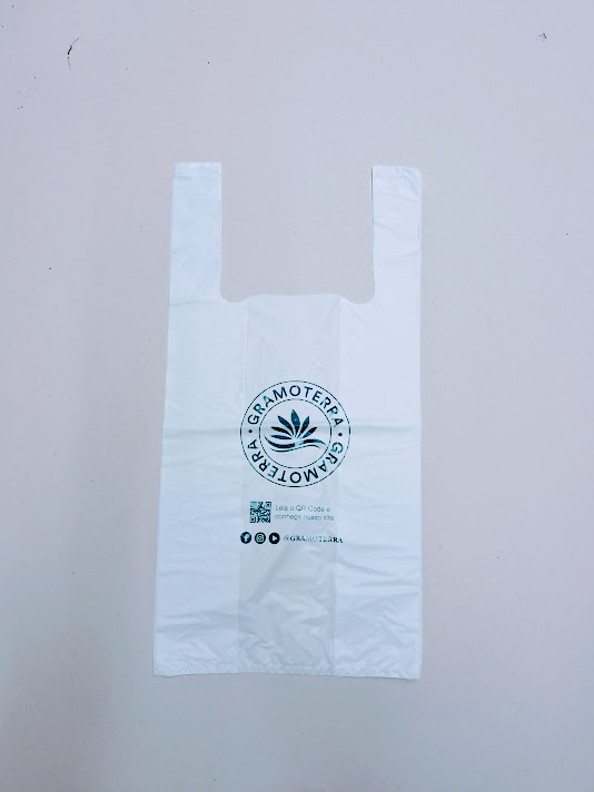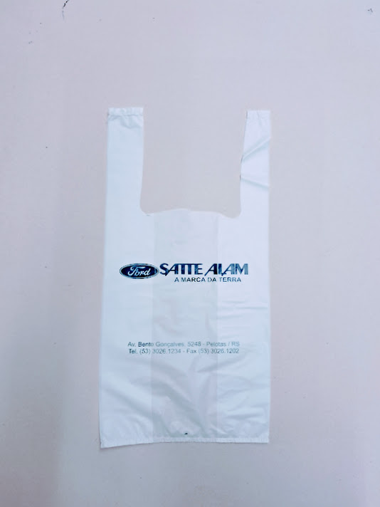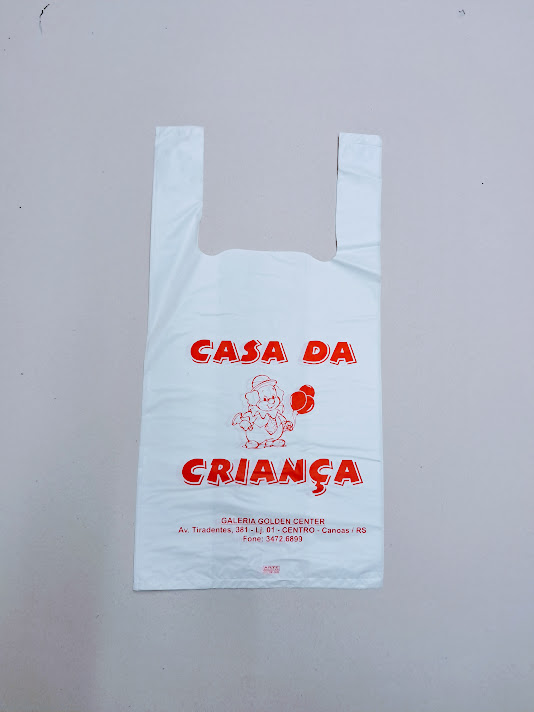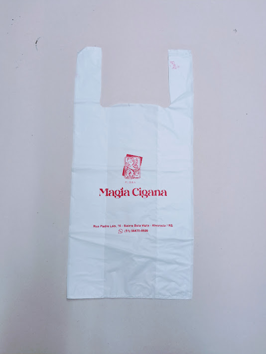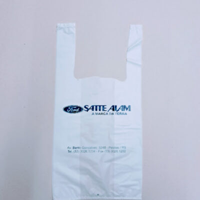 Sacolas personalizadas em plástico, com impressão em serigrafia ou flexografia. Alça camiseta: 30×40 e 40×50 (0,05)